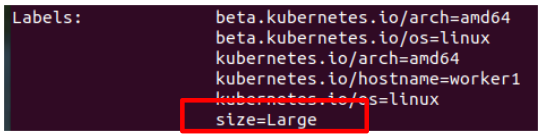 다음 그림은 Node1에 size: Large라는 Label를 설정 후 size: Large를 가진 Pod만 Node1에 배포하는 그림입니다.